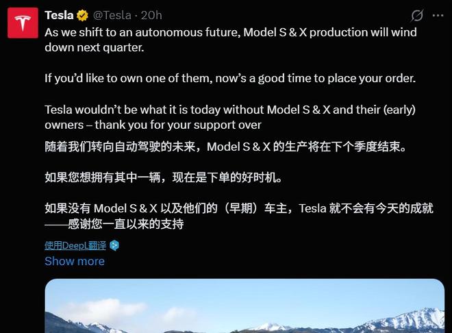 对于消费者而言,ModelS和ModelX的停产意味着一个时代的终结,马斯克提醒潜在买家:“如果你想拥有这两款车,现在就是下单的最后时刻”。