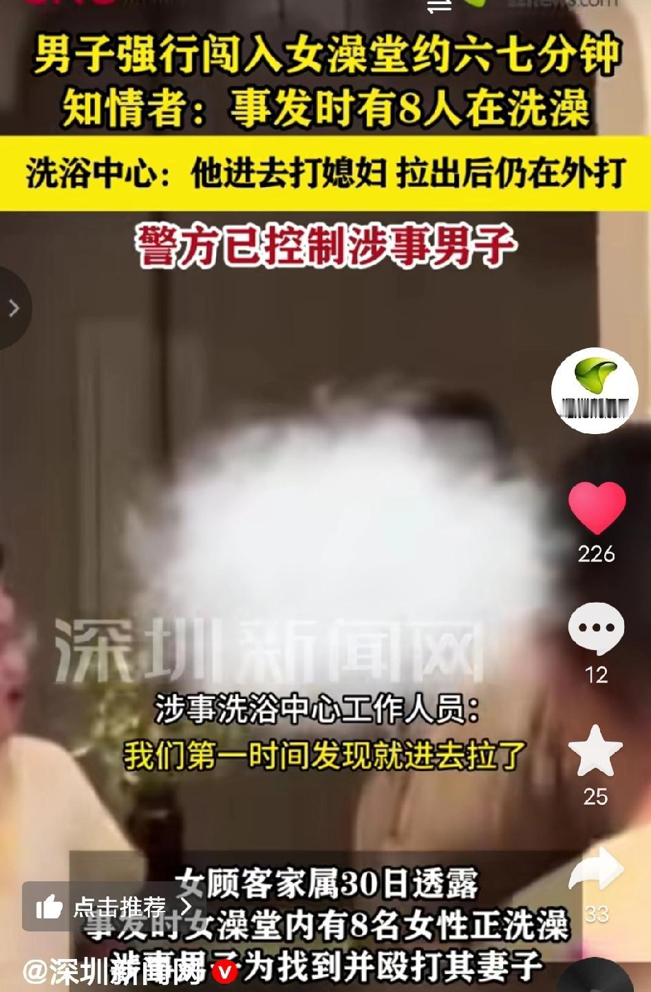 怒了!河南周口一男子为追打妻子,竟强行闯入女澡堂,8名女子洗澡时隐私全暴露,男子滞留6分钟还动手打人,洗浴中心只赔20张澡票!安保漏洞谁来补,女性隐私就这么不值钱? 2026年1月28日23时许,河南周口鹿邑县一洗浴中心里,8名女顾客正安心泡澡,没人料到一场难堪的侵犯突然降临。 一名男子为了追打自己的妻子,全然不顾女澡堂是私密场所,强行破门闯入,刺耳的推门声和争执声,瞬间打破了澡堂的安静,正在洗澡的女人们惊慌失措,慌忙抓浴巾遮体、往隔间挤,尖叫声混着慌乱的脚步声,吓得浑身发颤。 男子冲进澡堂后丝毫没有顾忌旁人,对着妻子大打出手,全程在澡堂内滞留了6到7分钟,期间满是争吵与殴打声,8名无辜女顾客的隐私被彻底侵犯,吓得不敢出声。 洗浴中心工作人员发现后第一时间上前阻拦,却被情绪激动的男子一把推倒在地,工作人员来不及反应,缓过神后立刻合力将男子拉出澡堂,可这短短几分钟,已经给在场的女人们留下了难以平复的阴影。 事发后,涉事男子已被警方控制,辖区派出所正介入调查处理,洗浴中心也同步配合调查,主动联系在场女性协商后续,同时提出给每位女顾客20张澡票作为补偿,这一方案引发不少顾客家属质疑,认为隐私受侵害仅用澡票弥补,实在难以接受。 有网友说:太离谱了!家暴已经够可恨,还祸及无辜,8个女人洗澡被看光,得留下多大心理阴影,涉事男的不仅要赔礼道歉,更要承担法律责任! 这场闹剧的根源,本就是男子失控施暴、无视规则闯私密场所,他不仅家暴妻子,更肆意侵犯多名女性隐私,还推倒工作人员,恶劣行径理应承担全部责任;洗浴中心虽第一时间阻拦,但在安保响应上确有疏漏,后续也需完善防护,避免再出现类似情况。 对于这个事情你怎么看呢? 河南男子闯女澡堂打老婆 洗浴中心安保漏洞 女性隐私遭侵犯 20张澡票补偿引争议