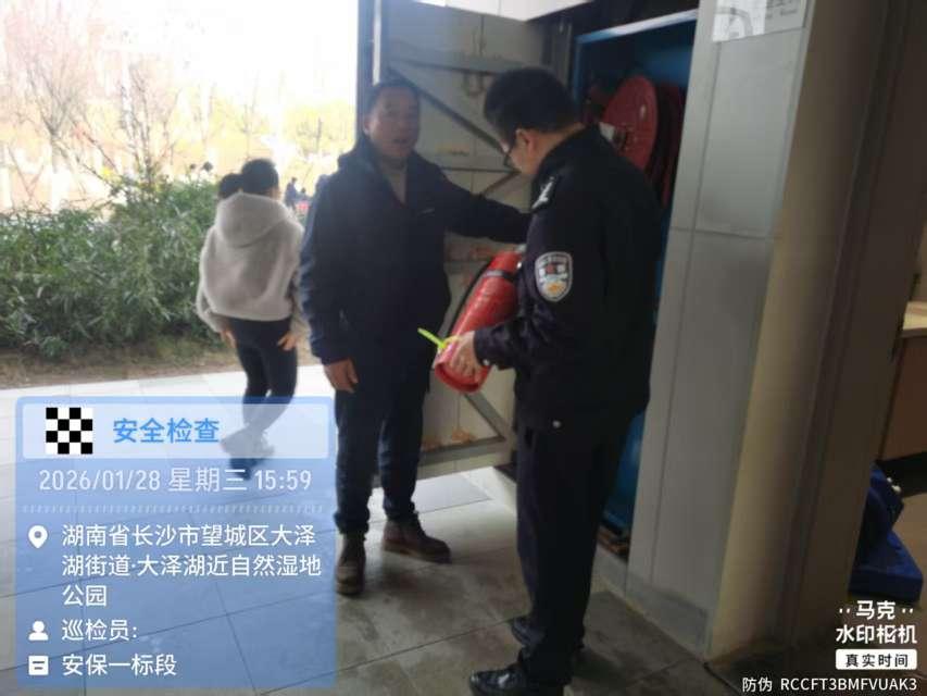 2026年1月28日,为切实提升大泽湖湿地公园的安全管理水平,增强群众安全防范意识,望城公安分局大泽湖派出所深入该公园,组织保安、工作人员开展雷锋义警培训,并对园内消防安全进行了全面检查,全力守护群众生命财产安全。