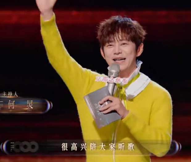 何炅cos森贝儿小狗哇塞!在《声生不息》里,何炅这造型绝了!黄绿毛衣配蕾丝,活脱