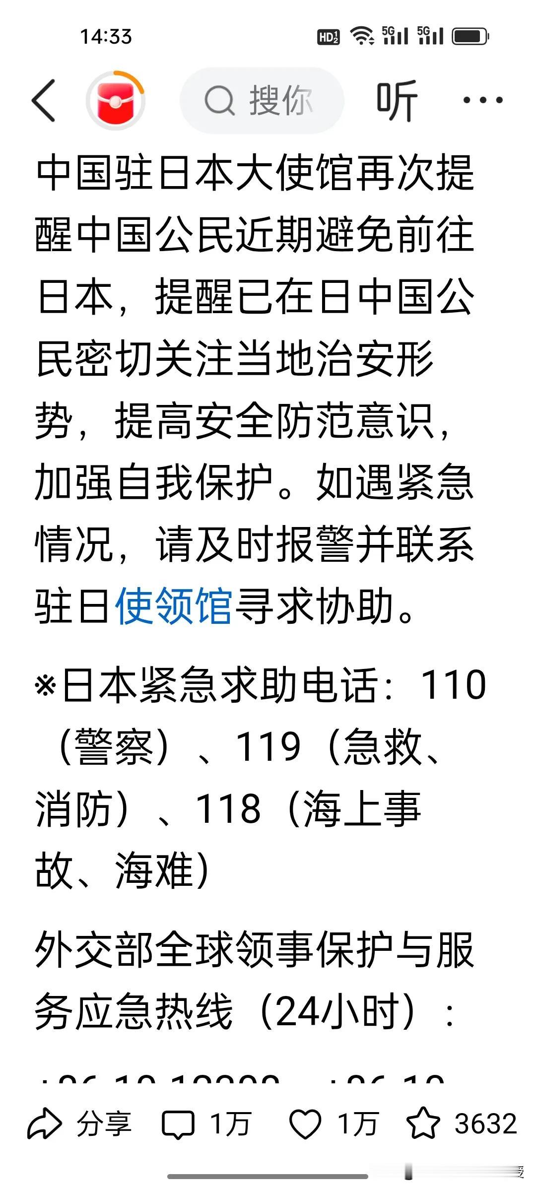 东京遇劫的两名中国公民是游客吗? 东京街头4.2亿日元现金被劫,两名中国公民遇袭的消息刷屏,不少人追问他们是不是赴日游客?答案大概率是否定的,随行还有三名日本同伴,更可能是在日留学生,这让人心头更添一层堵。 中方早已两度高级别提醒避免赴日,日本近期治安持续恶化,针对外国人的暴力犯罪频发,地震灾害也接连预警,风险摆在明面上。 无论留学还是出行,安全永远是第一位。这一起又一起针对中国人的袭击应该让我们看清楚日本的治安现状,国家的提醒从不是空话,坚决不去日本,才是对自己和家人最负责的选择。