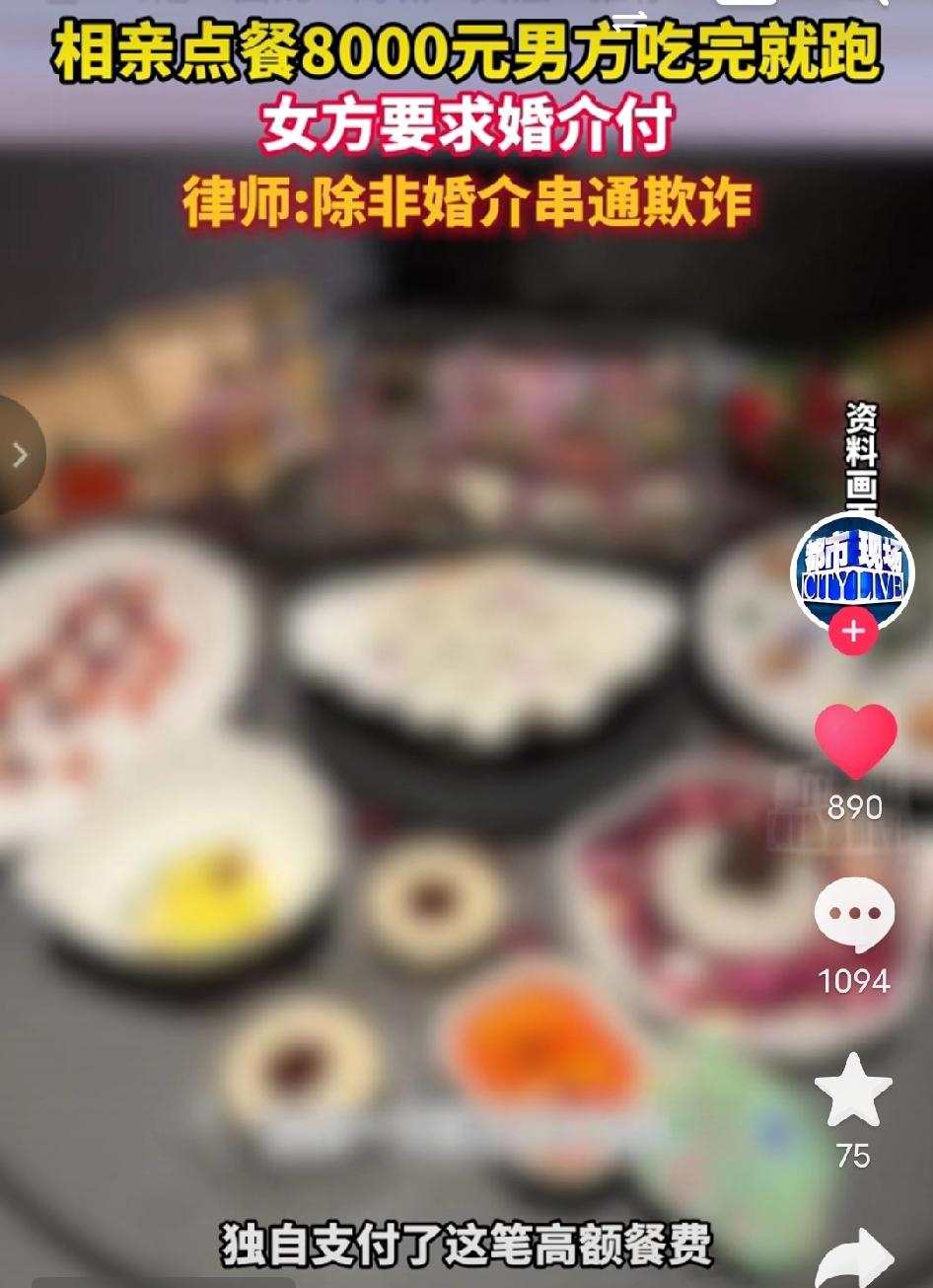 上老火了!上海女子相亲遇极品饭托男,豪点8000元大餐,吃到一半借上厕所跑路,女子刷信用卡买单,找婚介索赔竟被拒!相亲变坑钱现场,谁来给无辜女方撑腰? 上海,苏女士特意穿了米白色羊绒大衣,提前十分钟到了约定的法餐厅。这是婚介介绍的“优质男”王先生主动选的地方,人均两千,落地窗外就是外滩的璀璨夜景。 入座后,王先生接过菜单,笑着推到她面前:“你随便点,别客气。”苏女士刚想选一份三百多的意面,王先生已经抬手喊来服务员:“战斧牛排要五分熟,再来一瓶勃艮第红酒,还有那个波士顿龙虾,给我们整一只。” 他全程表现得体贴又大方,聊起自己的金融工作和健身日常,眼神里带着恰到好处的自信。苏女士放松了警惕,甚至觉得这次相亲或许真的能成。 谁知道,刚吃到一半,王先生忽然放下刀叉,皱着眉说:“不好意思,我去个洗手间。”他起身时还顺手拿起了搭在椅背上的外套,苏女士没多想,直到服务员端来最后一道甜品,她才发现人已经消失了20分钟。 她试着打王先生的电话,听筒里传来冰冷的“您所拨打的电话已关机”,微信也显示“消息已发出,但被对方拒收了”。直到服务员把账单递到她面前——8062元,她盯着那串数字,指尖都在发抖。 “我以为他只是去趟洗手间,没想到是跑单。”苏女士事后说,她只能刷了自己的信用卡付账,走出餐厅时,外滩的风刮在脸上,又冷又疼。 无奈之下,苏女士第二天就冲到婚介公司,把账单拍在桌上:“你们介绍的人跑了单,这钱必须你们赔!”可婚介经理摊摊手:“我们只负责核实他的身份信息,没义务为他的人品买单。” 此事引发网友热议 - 有网友怒怼:这男的也太没底线了!装大方点一桌贵的,转头借上厕所跑路,把相亲当蹭饭工具,人品烂到根里了,以后谁还敢跟他相处 - 也有网友替女方抱不平:女方也太冤了!本来是奔着好好相亲去的,结果被坑八千块,换谁都得气炸,这钱花得比吃了苍蝇还恶心 - 还有网友吐槽:婚介也不能完全撇干净吧?收了介绍费,好歹把人审核清楚啊,不然这不就是间接帮骗子牵线吗,太不负责任了 律师明确表示:婚介的义务只是核实会员的身份信息、促成双方见面,没有为会员的私人社交消费兜底的法律责任。这笔8000元餐费,苏女士只能向跑路的王先生本人追偿,除非能拿出证据证明婚介与男方串通欺诈,否则婚介一分钱都不用赔。 说白了,这事儿给所有人提了个醒:相亲交友别光看表面热情,面对超出预期的消费时,多留个心眼,别让自己的善意成了别人占便宜的机会。 换作是你遇到这种相亲对象,你会怎么办呢? 相亲跑路 天价餐费 婚介责任 民生热点 争议民生 来源:都市现场及网络公开内容,如有侵权请联系即删 配图说明:本文配图/视频素材来自@都市现场,仅用于内容分享,侵权联删