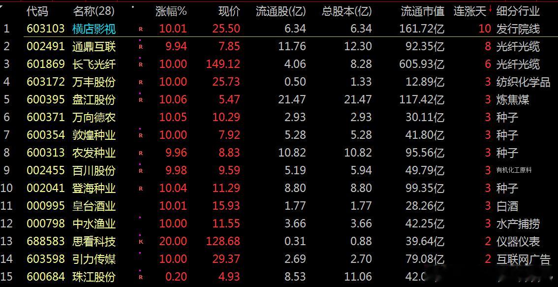 第二、板块轮动:前期热门题材退潮后,资金开始向农林牧渔、消费等板块集中,形成了结构性行情。影视院线作为消费链的一环,也获得了资金的青睐。