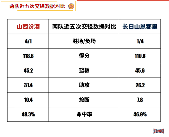山西汾酒与长白山恩都里历史上一共交手42次,山西汾酒22胜20负。上赛季两队交手2次,山西汾酒1胜1负。