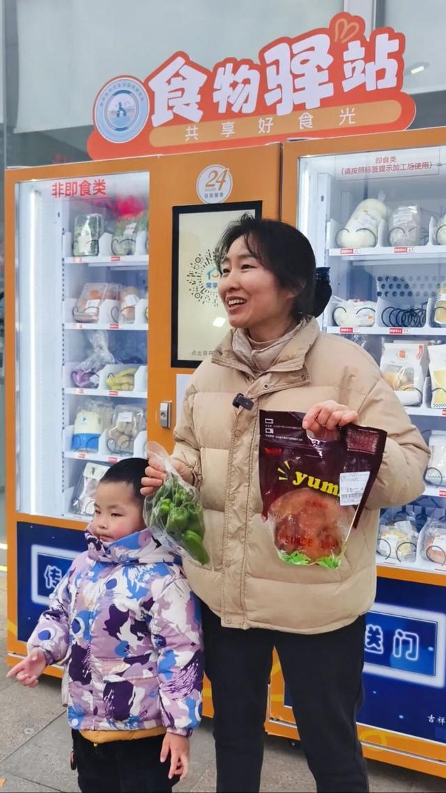 尹女士表示,她的大女儿患病卧床十多年,家庭开支仅靠丈夫工资支撑,还欠下不少外债。为节省开支,她常去超市晚市打折区采购。“每周菜钱尽量控制在二三十元,偶尔给女儿买点肉和香蕉。小儿子爱吃面包,平时都舍不得买。”现在,驿站里有家人喜爱的食物,可缓解家庭压力。更让她感到宽慰的是全程无接触的领取方式:“心里轻松很多,没那么局促。”