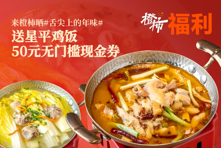 来橙柿晒#舌尖上的年味#,送星平鸡饭50元无门槛现金券