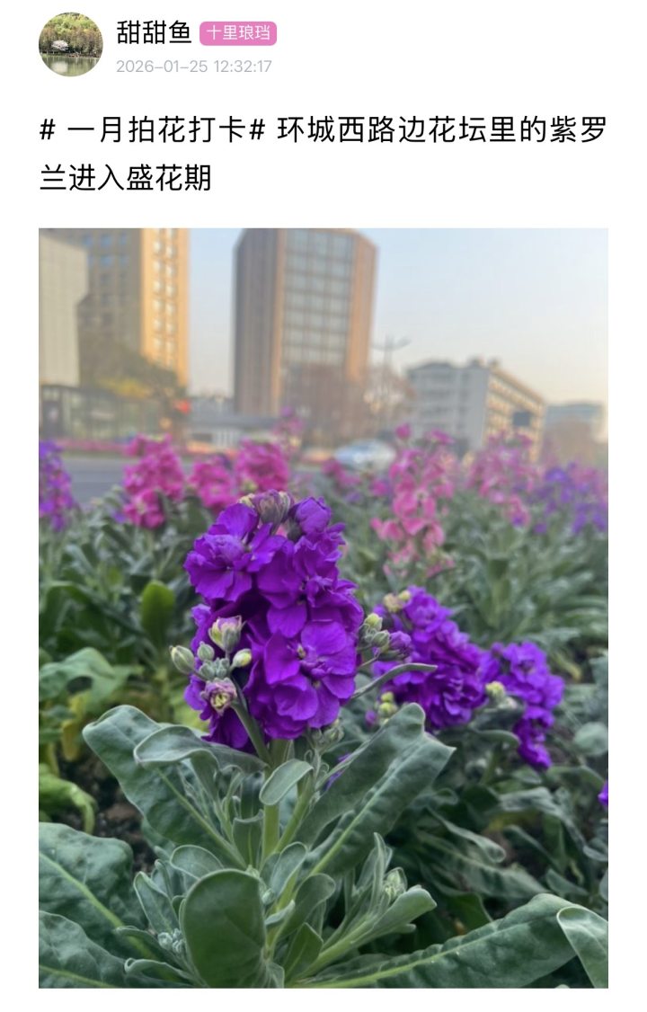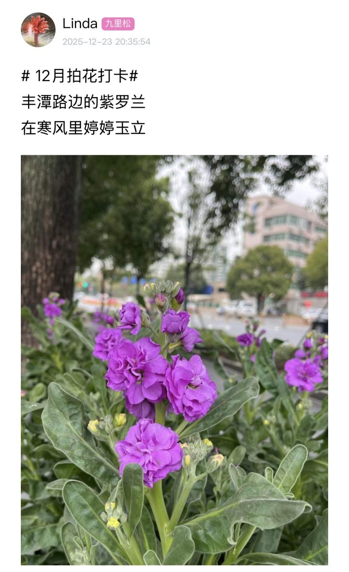 耐寒性拉满的紫罗兰,还是冬日里的亮眼行道花,最近不少橙友都在街头邂逅了它盛放的美好身影。对杭州花友而言,紫罗兰更是冬日养花的优选:耐低温、抗风雪,雪天也能傲然绽放,在户外轻松越冬。
