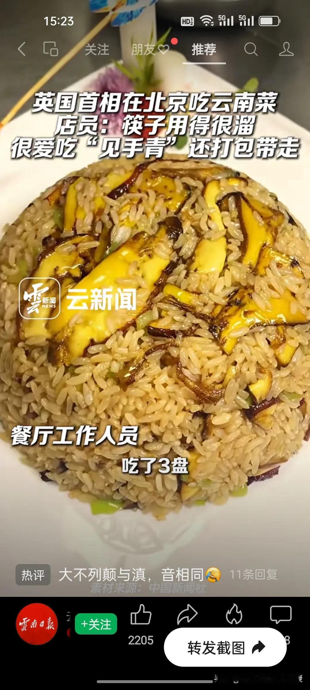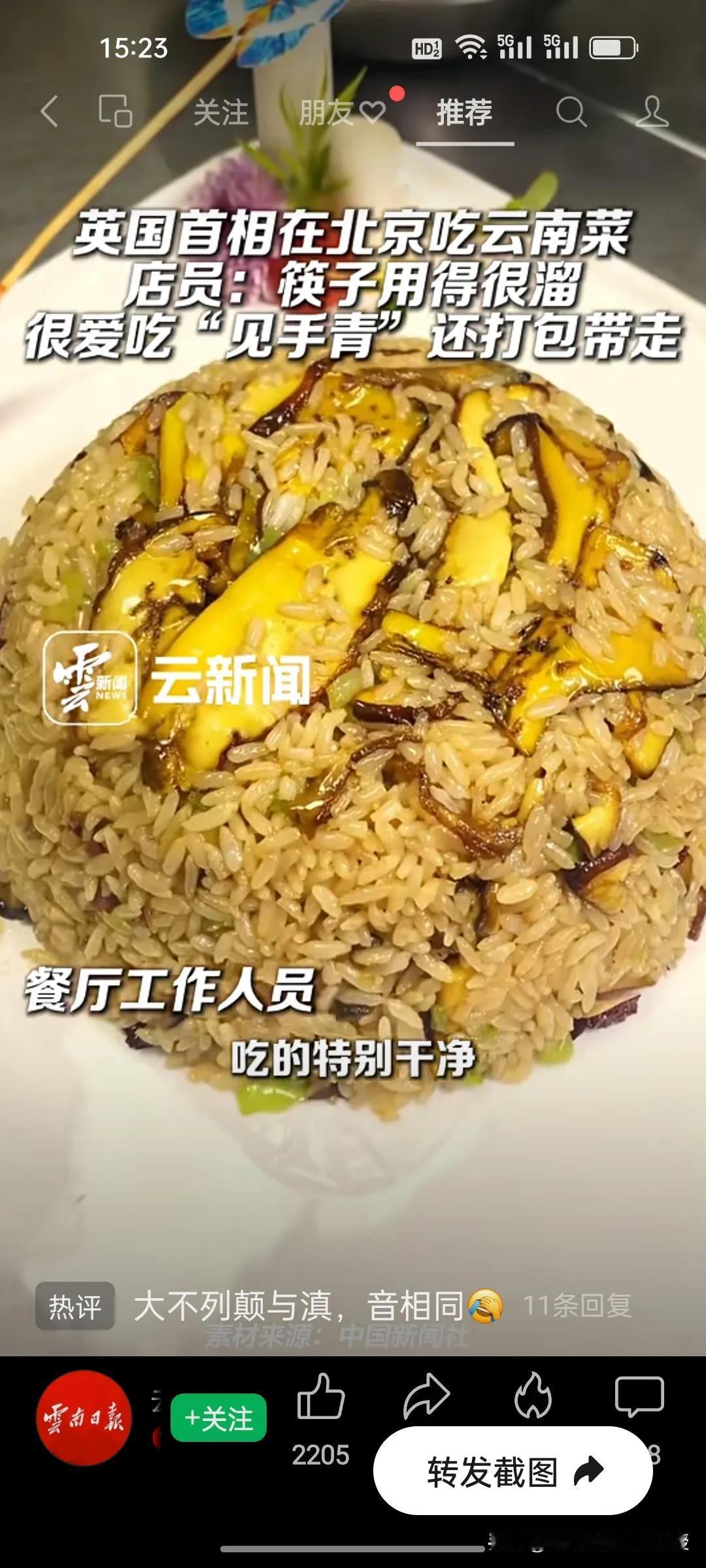 云南菜这次真的是火了!《云南日报》都来发视频了,视频中服务员说英国首相斯塔默来云南餐厅最爱吃见手青和牛肝菌,三盘全吃完了,还有一盘打包,筷子用得很溜。 斯塔默来北京第一顿饭不是吃北京烤鸭,而是选择云南菜,筷子用得很溜,说明斯塔默是资深中国菜的爱好者,黄仁勋这次来北京在王府中环吃的也是云南菜。 云南菜从默默无闻到今天瞬间就瞬间出圈,各路大咖接连打卡圈粉,中国八大菜系,是不是该给云南菜留个重要位置了?