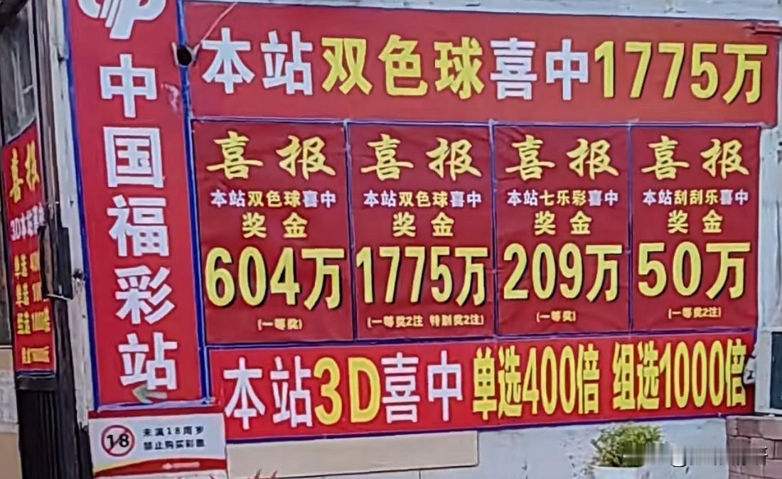 这是传说中的“神仙彩票店”吧?简直是一座被喜气包裹的“幸运博物馆”——墙上、玻璃门上,连椅子靠背都密密麻麻贴满了中奖喜报,红彤彤一片,像披了层喜庆的锦缎。一眼望去,最显眼的那张写着:“本站双色球喜中1775万!”字迹飞扬,仿佛还带着当时的欢呼声。这笔巨奖是在派奖活动期间中的,奖金丰厚得令人心跳加速。 都说彩票店各有各的“运气”——有的小店开业多年,连个像样的大奖都未曾露面;而像眼前这家,却仿佛被幸运之神频频眷顾,大奖接二连三“登门拜访”。这其中奥秘,除了那么一点运气,恐怕跟店铺人气旺、彩票销量大也分不开——毕竟,买的多了,机会自然也多几分。 这家福气满满的店,就在山东青岛。如果你恰好在附近,不妨顺路进去转转,摸摸红火火的喜报,沾沾那股子热腾腾的喜气。谁说得准呢?也许下一个喜报上的名字,就是你。别忘了,梦想总要有的——万一实现了呢?