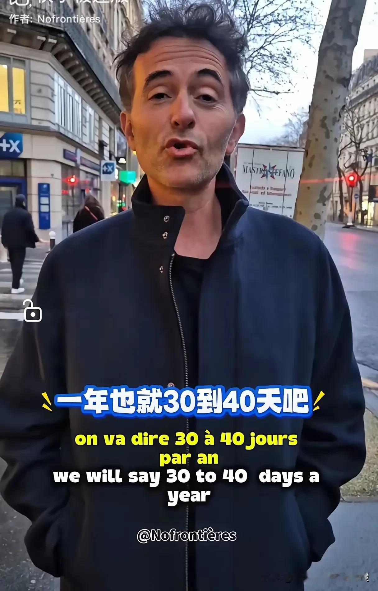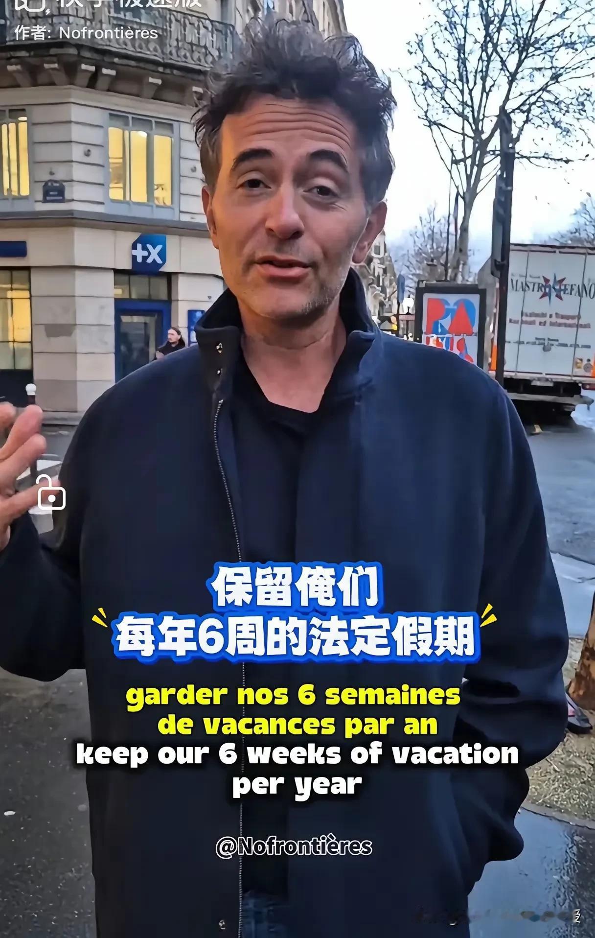 100万欧想收买法国人?这条件把我看笑了... 在一个街头采访里,法国人被问“100万欧愿不愿变成美国人”,他笑着说“愿意”,但条件堪称“凡尔赛”式反讽:必须保留每年6周假期、每周35小时工作制、不给小费的习惯,还要免费医保,甚至得加上美国的法定假日。 这哪里是被收买,分明是把美式生活按法国标准重新改造。一句玩笑,道尽法国人对自己生活方式的傲娇,也暗戳戳讽刺了美国的“收买”根本入不了他们的眼。