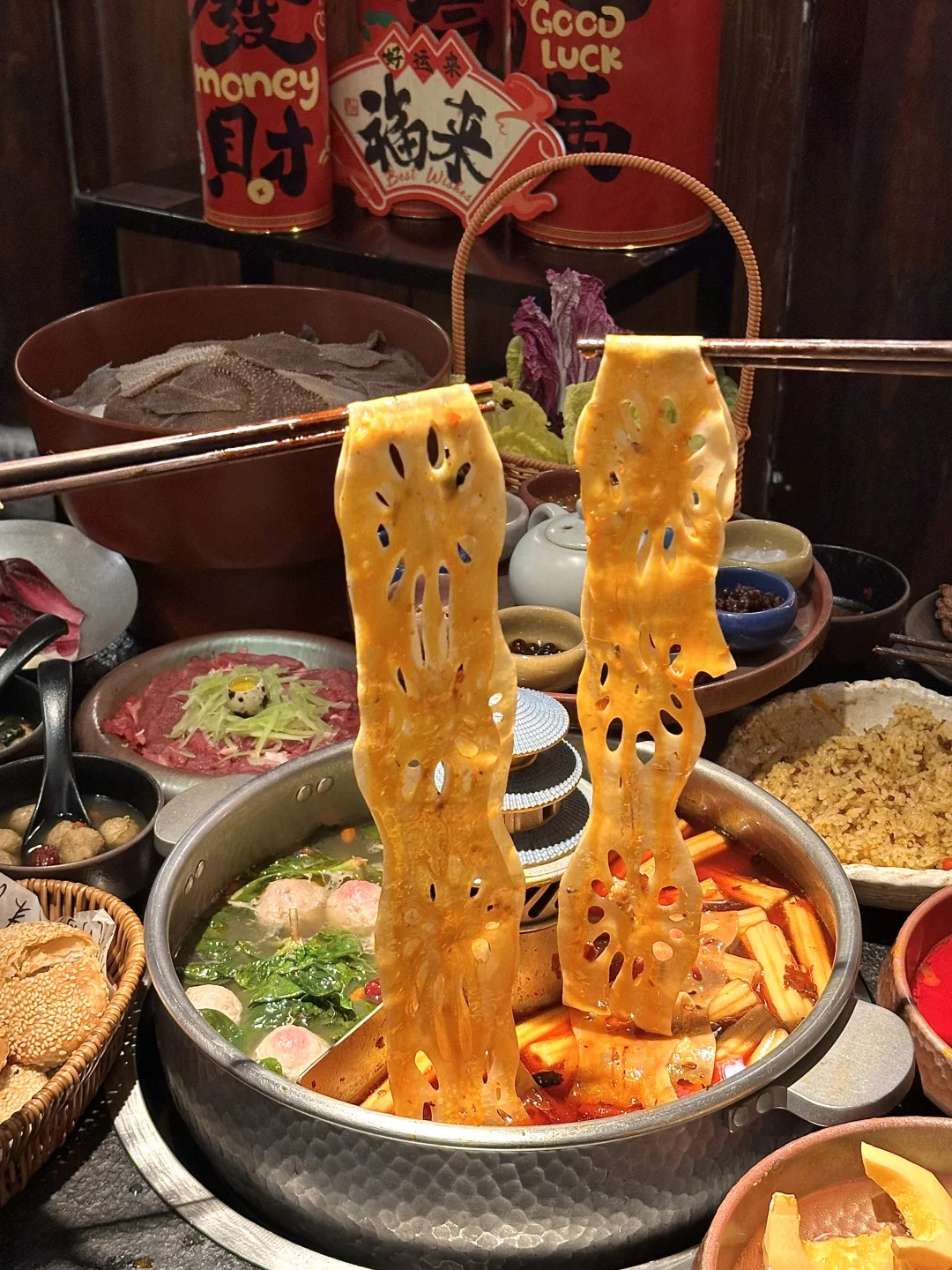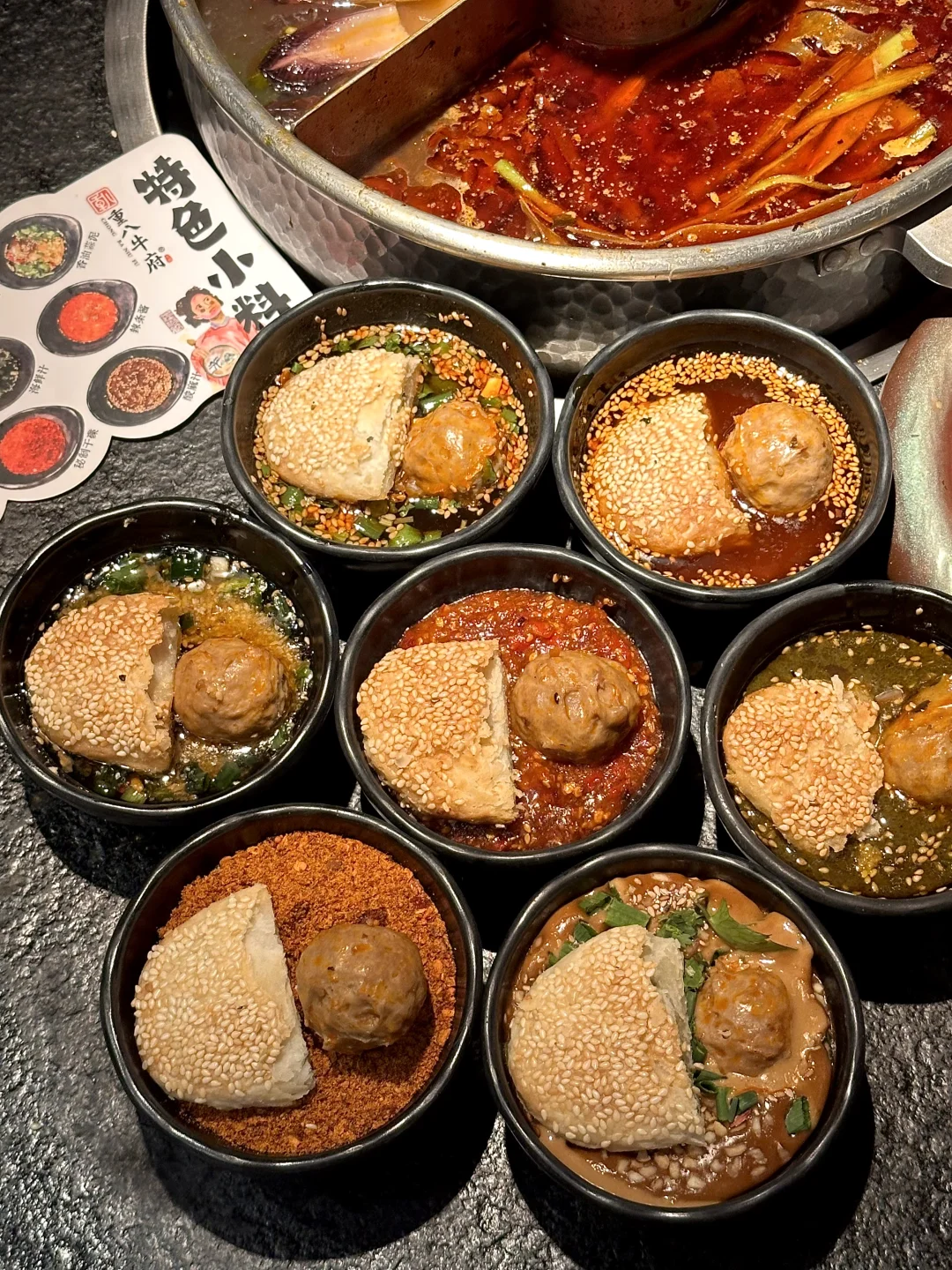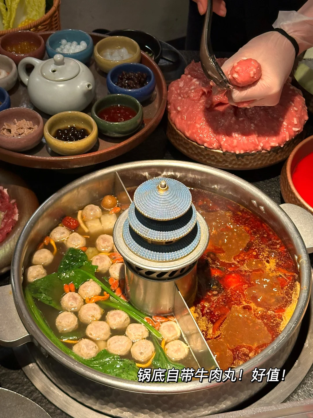 感谢本地人带路🙏开了十来年的老店真的好好吃… · ✔️招牌煳辣锅&珍珠翡翠锅: 好特别!辣而不燥竟然带有一丝焦糖香味~不会越煮越苦!翡翠锅自带10颗手打牛丸,吃前先喝汤真的涮什么都好吃! ✔️手打牛丸:上桌现搓现煮,入口劲道会爆汁! 一定要试试他家秘制小料!口味丰富新颖又好吃😭别家吃不到。。 氛围环境也很好,求求了新年不要再去网红店人挤人了,这里不香吗???