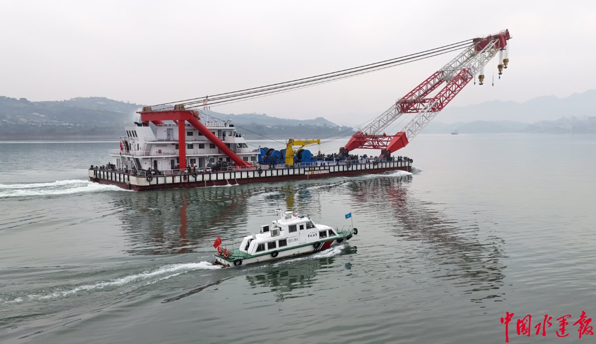 1月29日,重庆中江船业有限公司建造的800吨变幅式自航起重船“重庆应急012号”在涪陵顺利开展试航作业。该船吊钩至甲板最大高度达72.2米、最大载荷800吨,系长江上游同类型船舶之最,其成功试航填补了重庆地区大吨位应急起重船舶的配置空白,为流域应急抢险、大件运输提供了硬核支撑。然而,该船方形系数大、操纵难度高,且试航时吊臂需以30°角固定船首致船体超常规尺度,试航安全风险突出。为确保试航工作万无一失,涪陵海事处采取“全程跟船+立体管控”的保障模式,全程护航试航作业平稳推进。