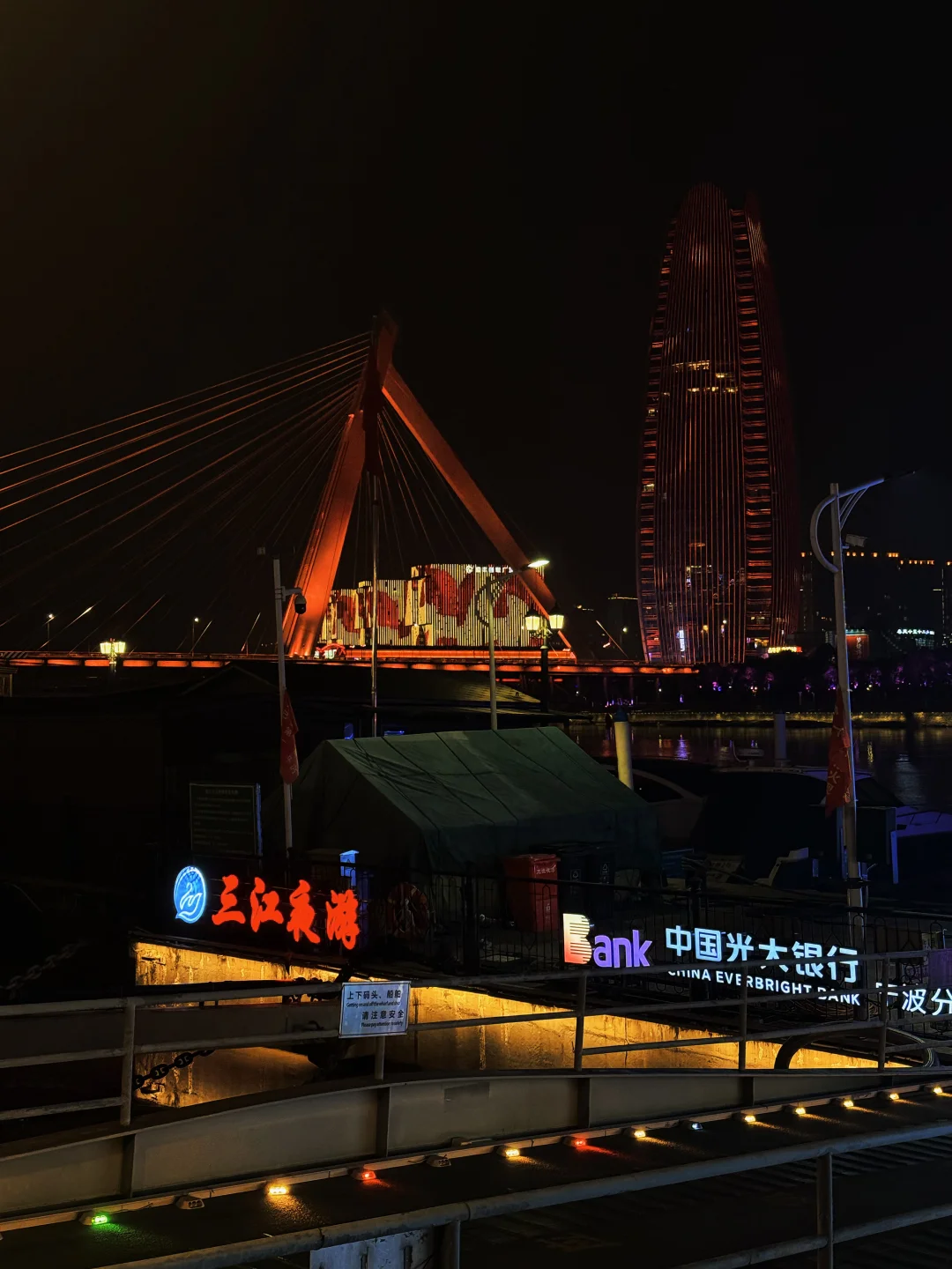 门口就是夜游三江码头⛵️一赏宁波夜晚风景