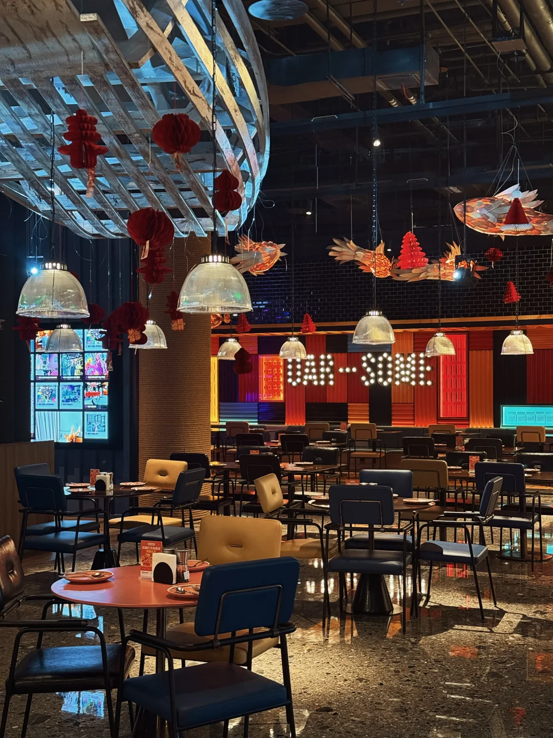 🔹餐厅:港口风格的设计超有氛围感,空中悬挂的鱼形装置童趣满满,拍照超出片。