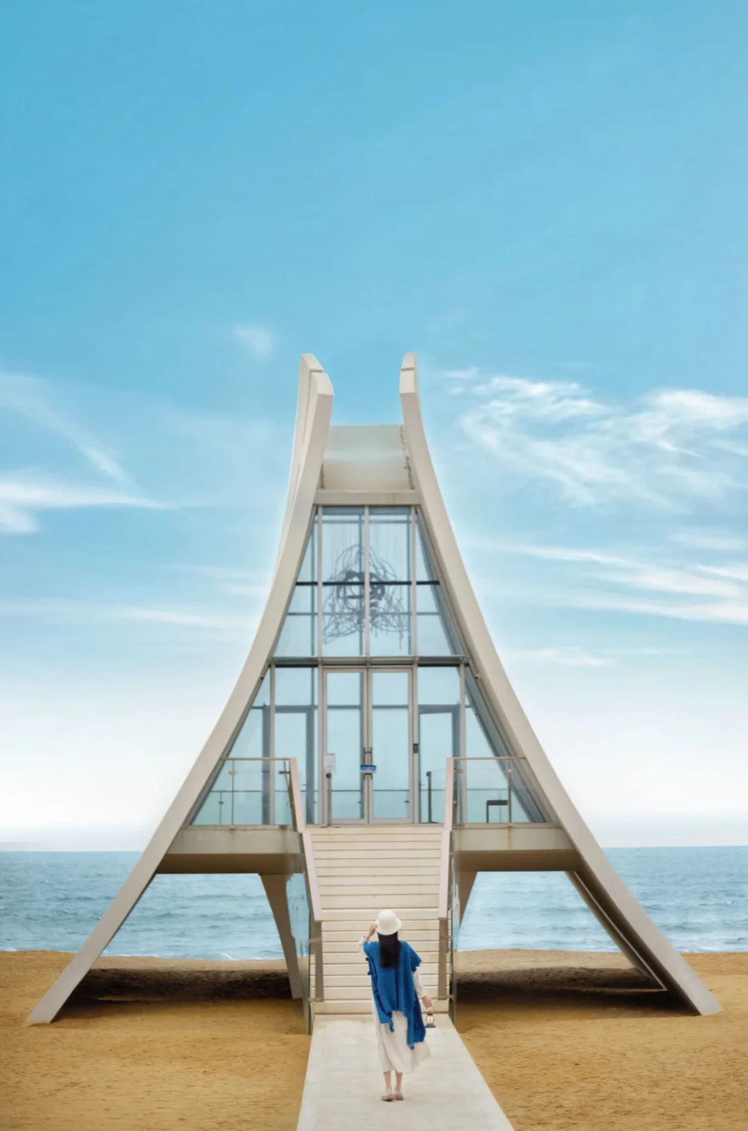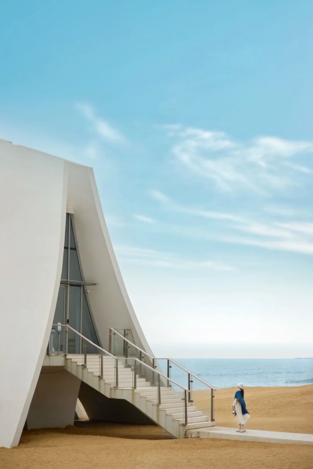 纯白艺术空间太惊艳了❗️建筑灵感来自潮汕“红头船”流畅线条在阳光下像一艘即将启航的帆,内部是艺术展馆+文化展厅,静静感受“启航与归来”的故事。