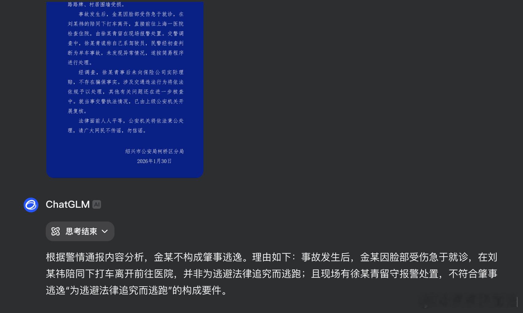 警方通报金晨事件一句话总结,不涉嫌肇事逃逸,但是涉嫌让别人顶包,同样违法。金晨道