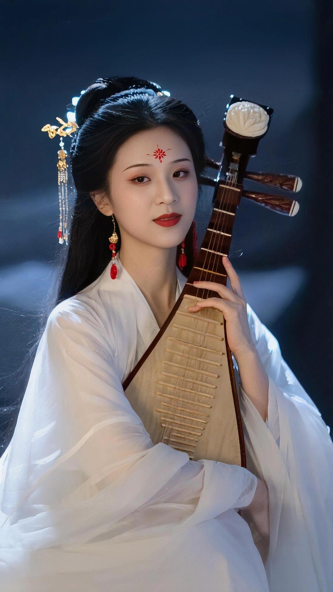 素衣抱琵琶,低眉拢弦间。她不似凡尘客,倒像是从月光里走出来的人,指尖轻动,便让整个夜色都跟着温柔了几分。 素衣凝露倚清光, 慢捻冰丝试旧腔。 一点花钿凝晓日, 半弯云鬓带秋霜。 弦中暗寄三生约, 指底轻翻九曲肠。 莫道人间无月色, 此身原是月中裳。 素衣轻舞倚楼台 古韵仙颜 古风少女的服装 白裳古韵照 古装古典风格 古典华服 古典纱裙照 白衫是月光织的茧 你坐在影子里 把琵琶抱成一弯月亮 指尖刚触到弦 夜色就开始颤抖 那朵贴在眉心的红 是未说出口的心跳 不必弹出完整的曲子 只要你垂眸时 睫毛轻扫过琴弦 人间就又多了一阙温柔的回响