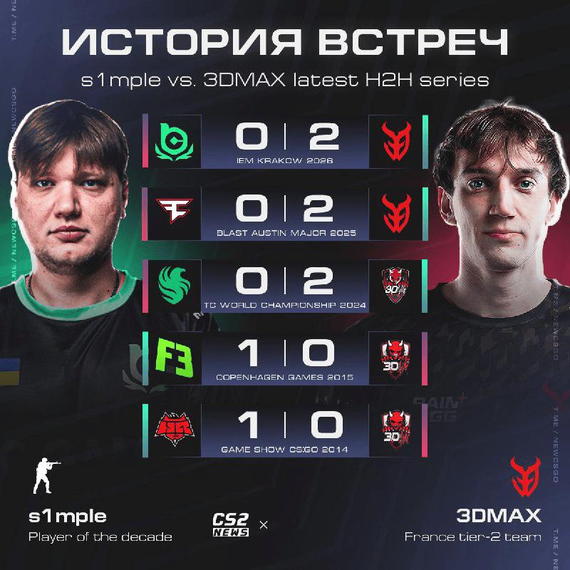 根据外媒CS2NEWS统计,s1mple已长达十年未能战胜3DMAX,上一次获胜还要追溯到效力于FlipSid3F时期。在这十年间,s1mple仅与3DMAX交手三次,且分别代表Falcons和FaZe等不同队伍,结果均以0-2告负。此外,BC.Game将于今日北京时间23:30对阵NIP,此战是他们争夺晋级第二阶段的关键一战。