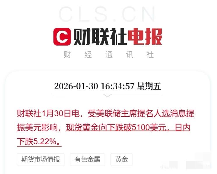 现货黄金跌破5100美元,白银跌超10%,这波跳水看得人懵了——明明没什么惊天大