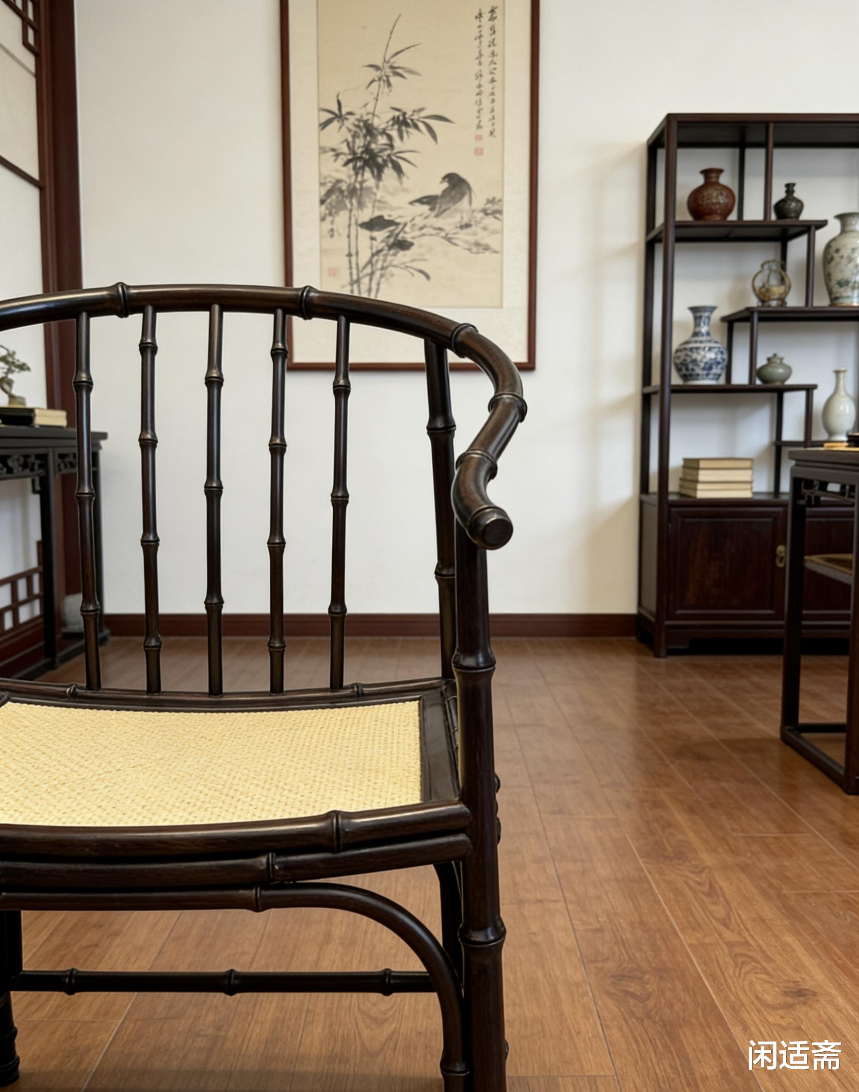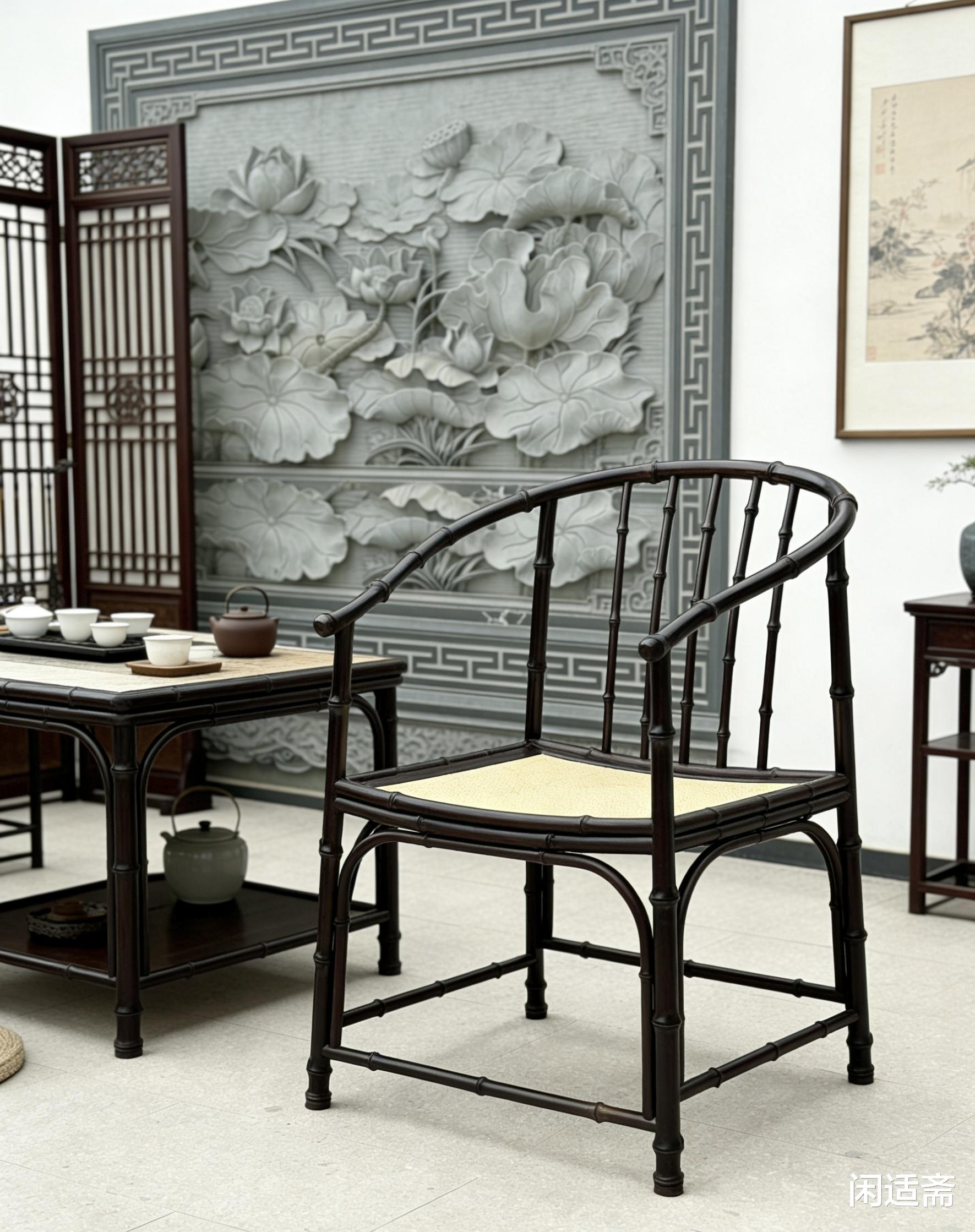 竹,是东方文化的精神符号,承载着“君子比德于竹”的深厚底蕴——中空有节,象征谦逊自持;挺拔向上,寓意坚韧不屈;四季常青,代表清雅高洁,历来是文人雅士的偏爱,更是中式雅器的经典元素。而圈椅,作为明式家具的精髓,以圆润柔和的线条、端庄大气的形制,承载着中式美学的内敛与温润。