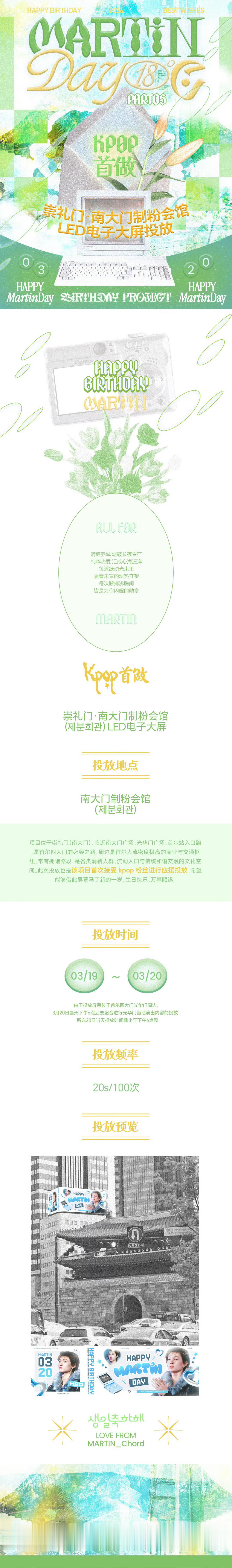 又是kpop首做,cortis马丁生日应援三连💥韩国地标性建筑景点,号称“国门”以及“1号国宝”的崇礼门大屏,此次投放也是该项目首次接受kpop粉丝进行应援投放!MARTIN0320生日快乐