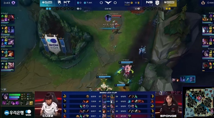 NS:上单Kingen、打野Sponge、中单Scout、下路Taeyoon、辅助Lehends