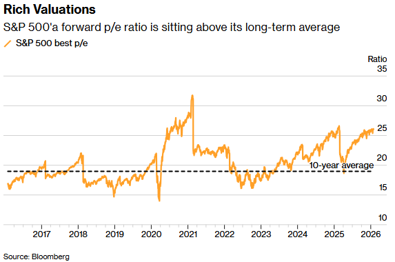 事实上,尽管整体企业业绩尚可,但已显露出动能减弱的迹象。数据显示,截至周四上午公布财报的约150家公司中,77%的公司盈利超出预期,但这可能是一年来表现最弱的一次。若再叠加持续的地缘政治不确定性,以及经历三年两位数涨幅后已显昂贵的股市估值,市场压力不容忽视。