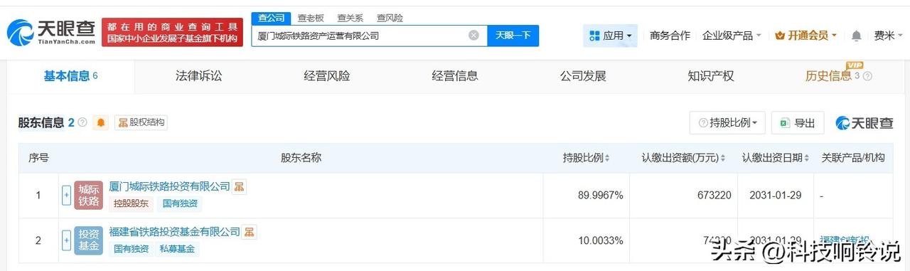 【厦门城际铁路资产运营公司登记成立 注册资本约74.8亿】 天眼查App显示,1月30日,厦门城际铁路资产运营有限公司成立,法定代表人为张晟玚,注册资本约74.8亿人民币,经营范围包括自有资金投资的资产管理服务、以自有资金从事投资活动、工程管理服务、非居住房地产租赁等,由厦门城际铁路投资有限公司、福建省铁路投资基金有限公司共同持股。 天眼查信息:
