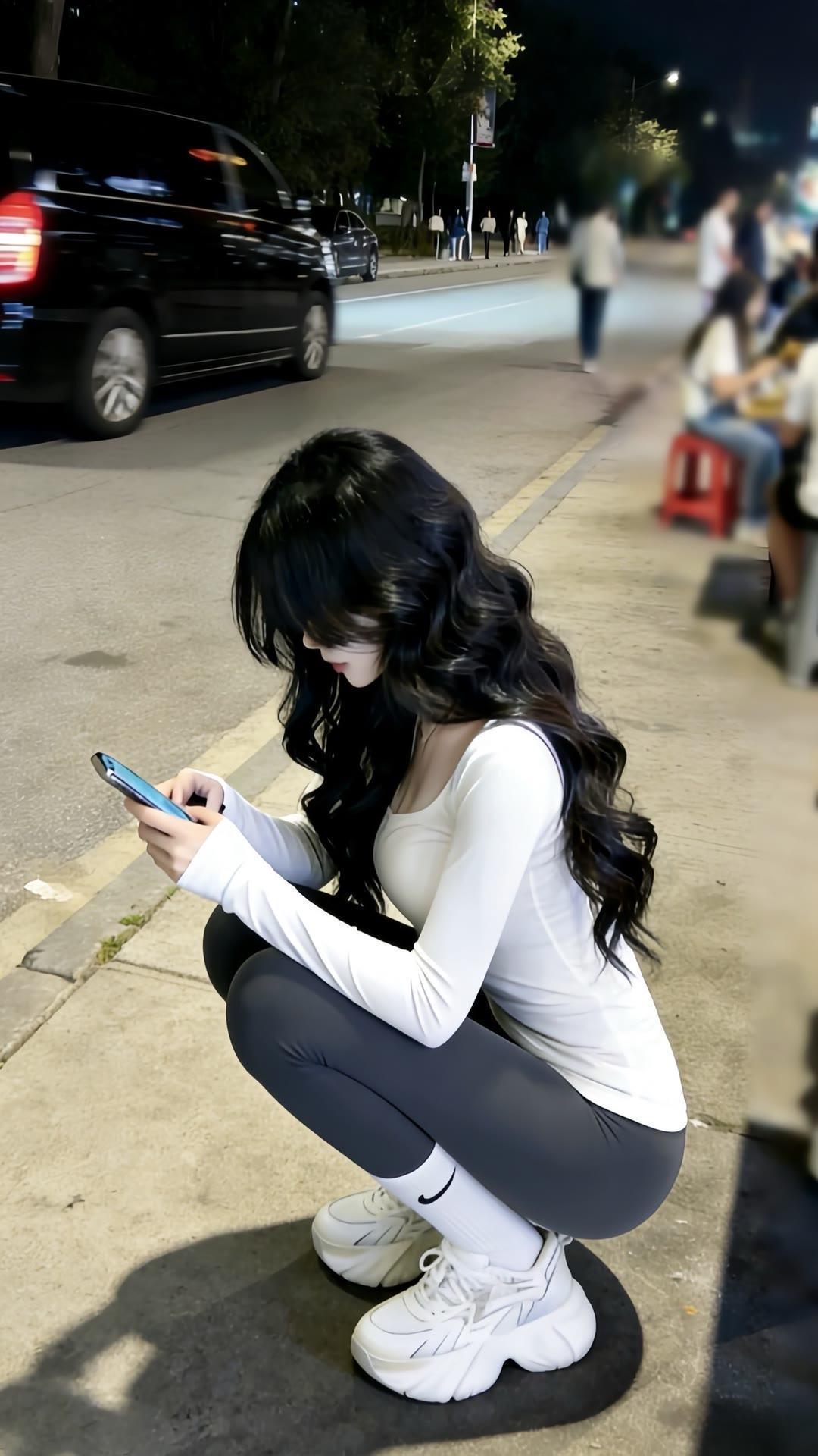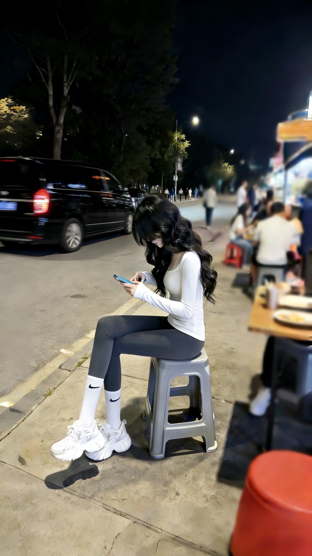 夜晚街边,独坐思索,手机相伴,静享时光。