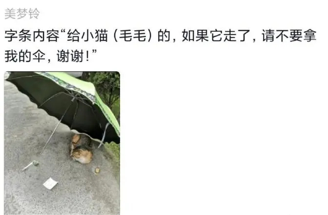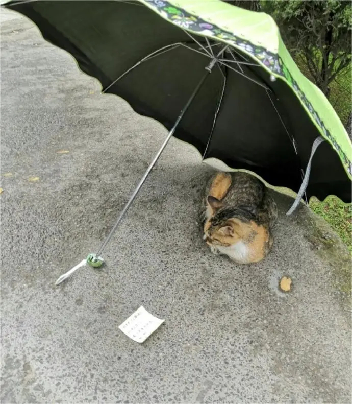 下雨天网友们给流浪猫咪撑伞,被温暖到了[送心]前段时间广州暴雨,有网友晒出了温暖