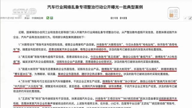 国家网信办违法和不良信息举报中心受理处置二处处长卫文新:我们在举报的受理中也发现一些车企之间互相进行攻击,利用自媒体发布负面信息抹黑竞争对手。举报中还有一些企业高管甚至利用自身的影响力在网上拉踩引战带节奏,这种行为严重影响到了汽车领域的舆论生态。