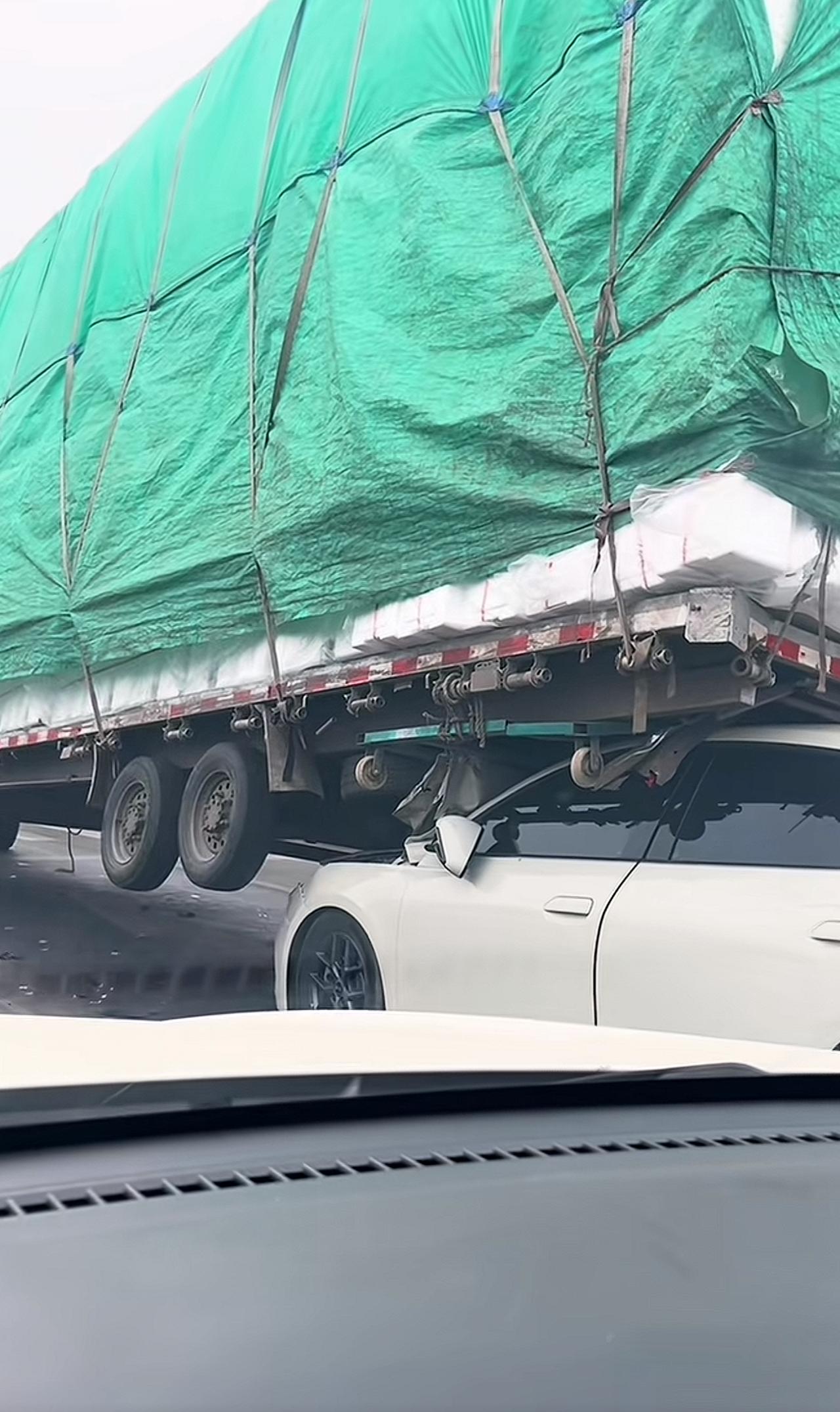 第一次看到小车这样钻货车底的,你说车速不快吧,它把货车顶起来了,你说车速太快吧,A柱又纹丝不动,比亚迪,还是有东西的。【来自懂车帝车友圈】