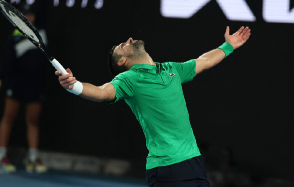 虎扑01月30日讯澳网男单半决赛,38岁德约科维奇鏖战五盘,3-2战胜卫冕冠军辛纳,职业生涯第11次打进澳网男单决赛。