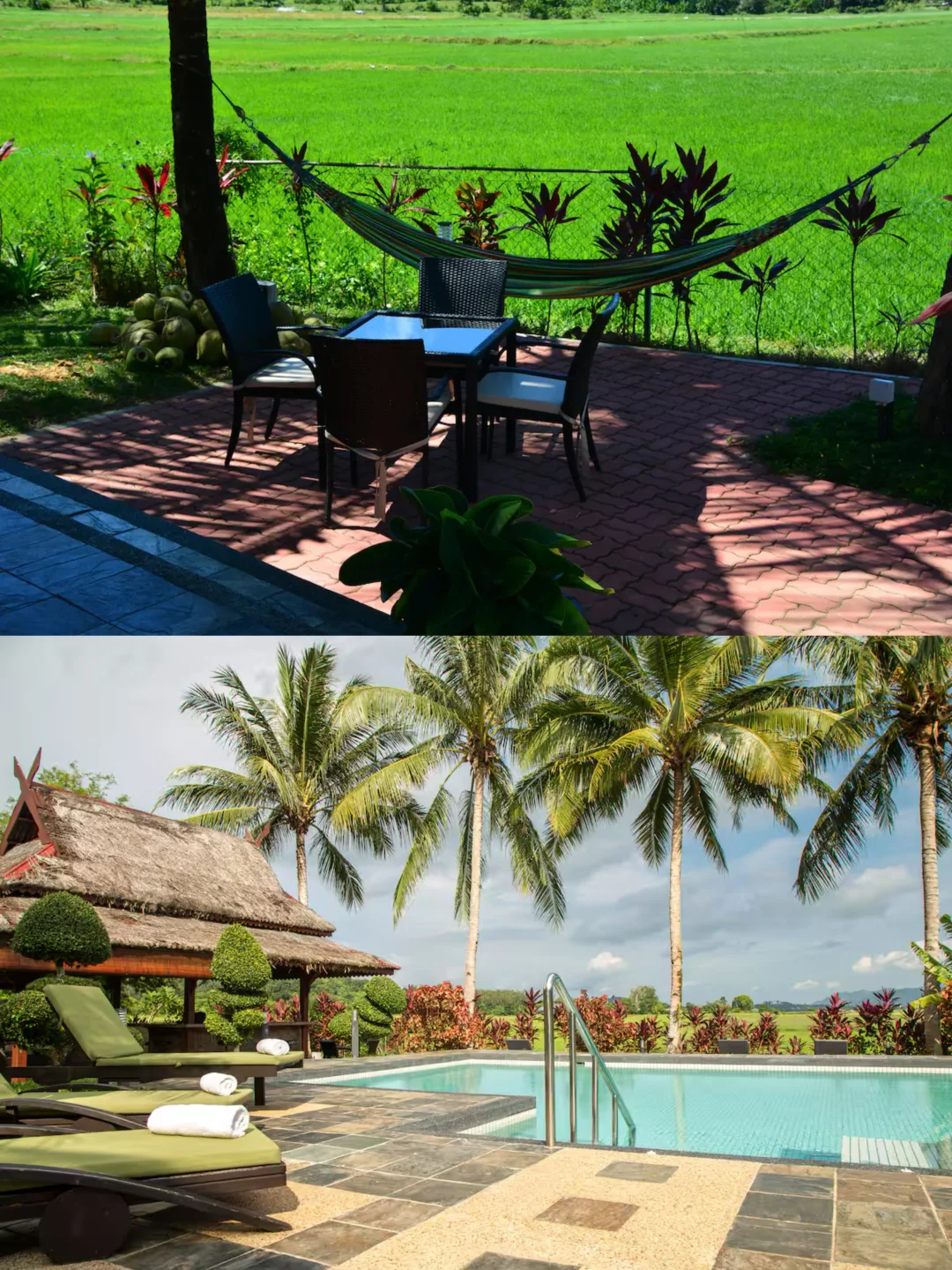 空间宽敞,并且每一扇窗户外的景色都像画一样漂亮。坐在露台上就可以欣赏近处的稻田和远处的山脉⛰️,
