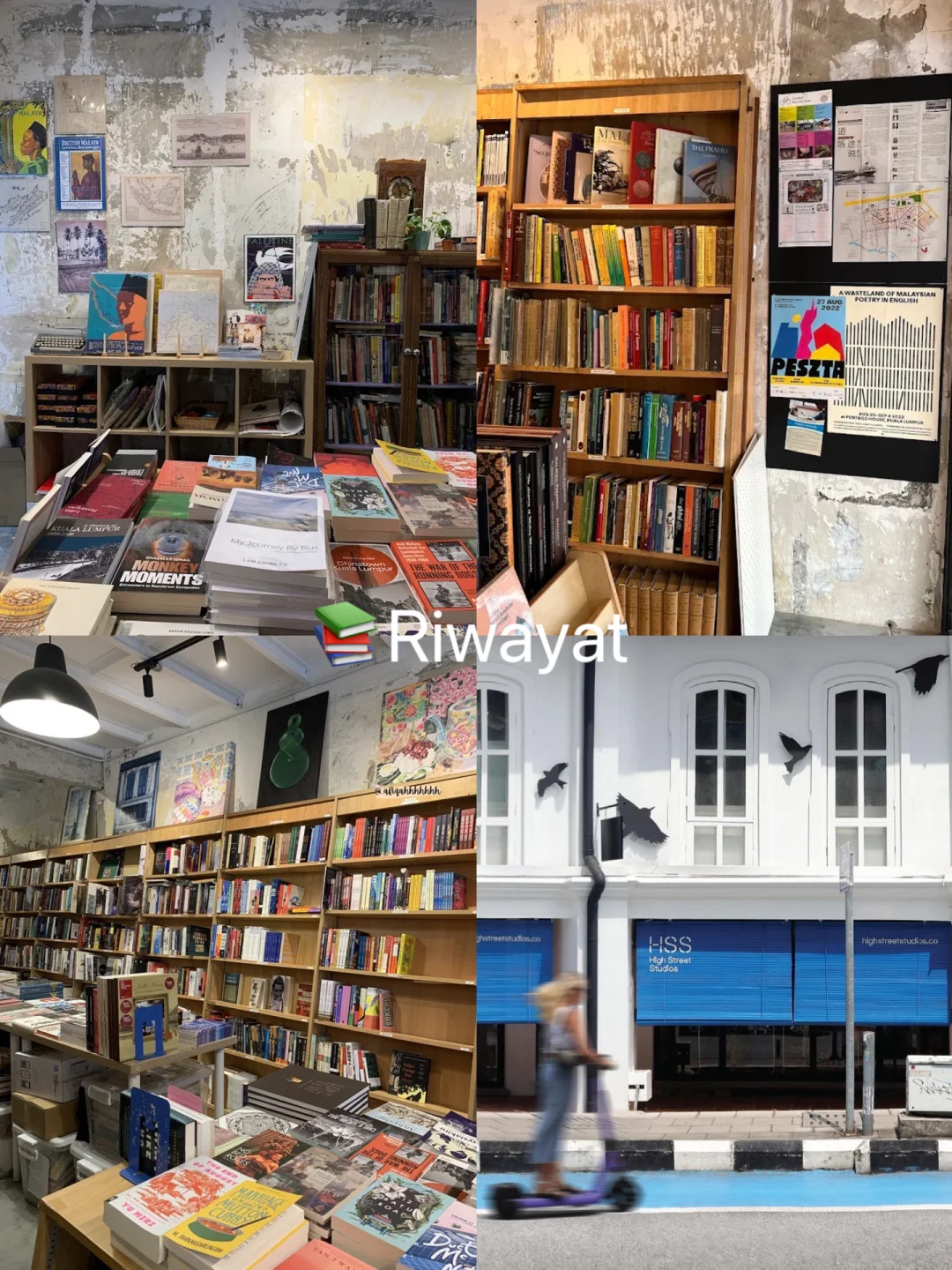 📚Riwayat :这家独立书店在一个老街改建的文创聚集地,距离茨厂街很近,这里有很多独立工作室,书店,咖啡馆,餐厅,展览。在Riwayat看完书可以去LOKL Coffee Co吃东西喝咖啡