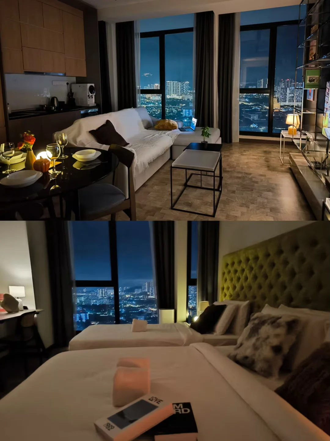 -民宿位于高层,通透的落地窗可以俯瞰吉隆坡城市绝美夜景,内部装饰的干净、优雅、舒适,像住✨级酒店一样舒服