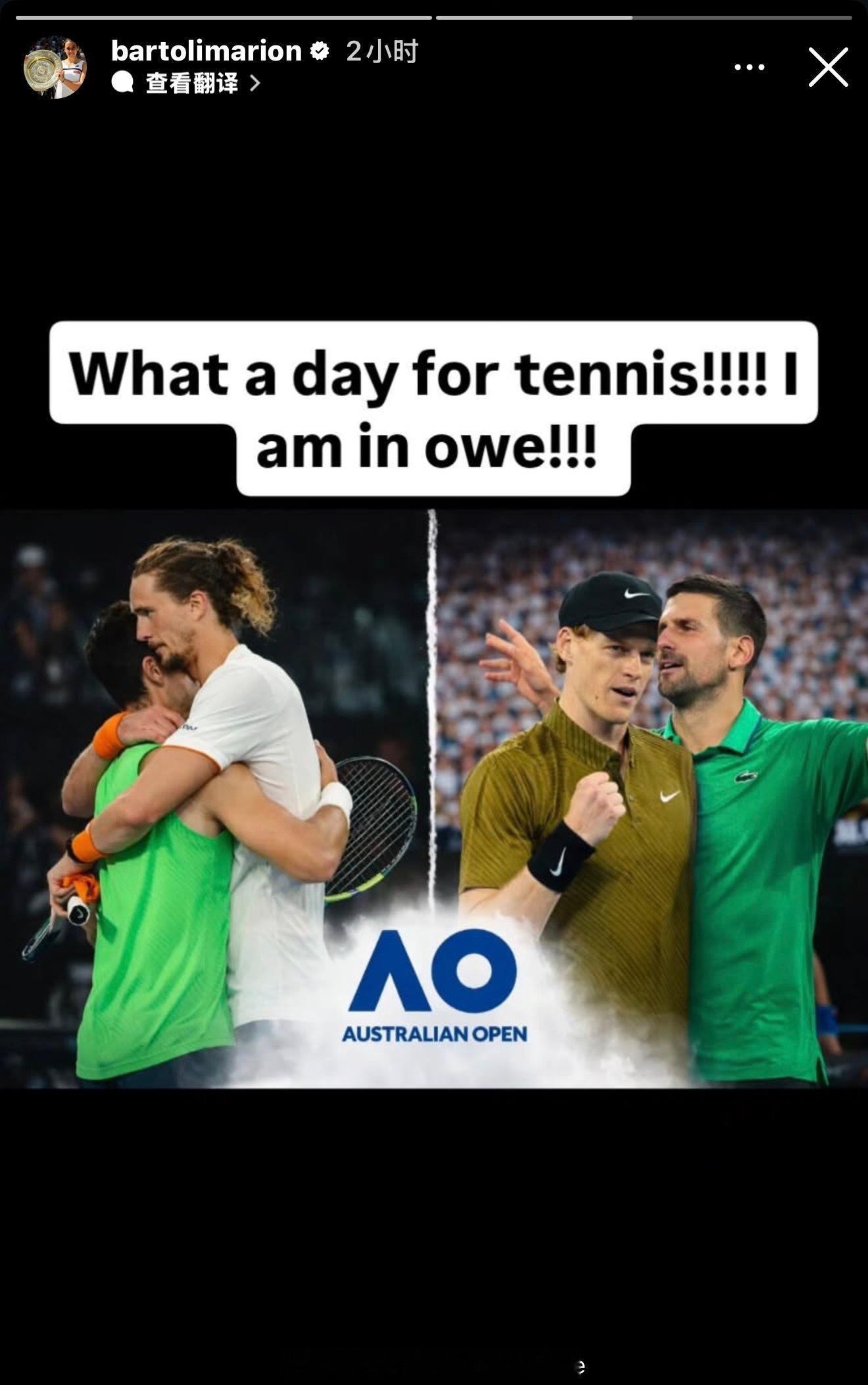 【众球员观看并恭喜德约科维奇进决赛】这两场半决赛的质量简直绝了。德约科维奇第11