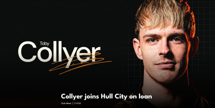 赫尔城也宣布租借曼联中场托比·科利尔至赛季结束。