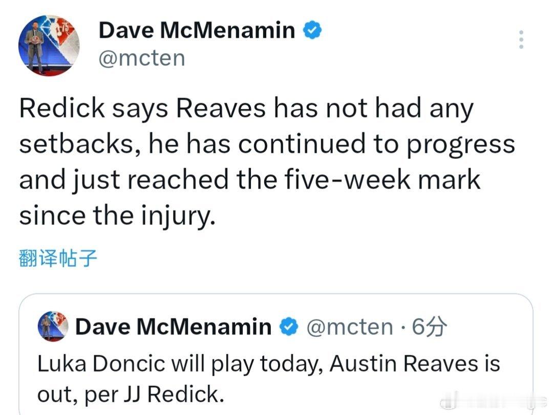Dave:东契奇今晚打,为了谨慎起见里弗斯不打,目前一直在稳定恢复,距离里弗斯受