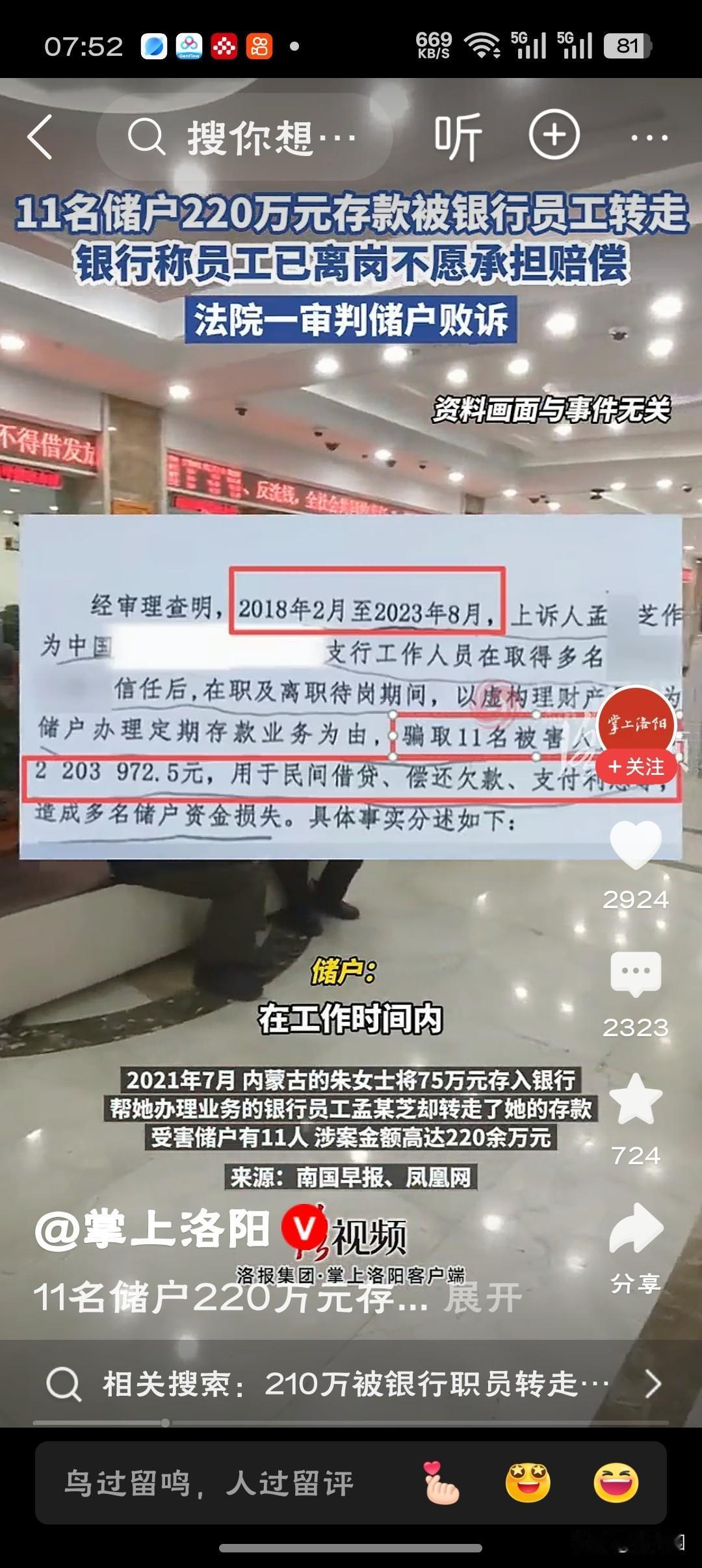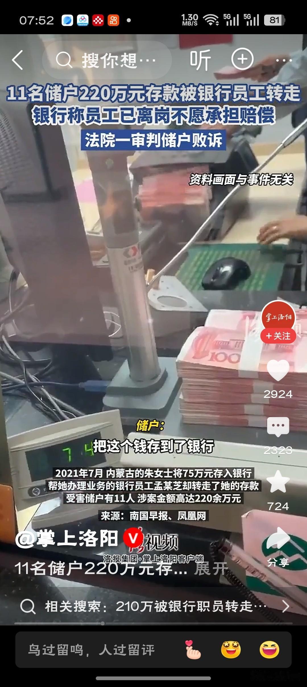 11名储户220万存款被银行员工转走“铁打的金库招牌,却防不住流动的内鬼,这哪是