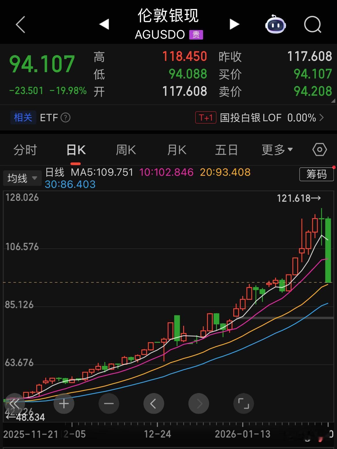 暴跌总在狂欢之时发生! 我们见证了一个黄金白银史诗级暴跌的历史,白银现单日最大下跌36%,黄金单日暴跌1000美元,最大跌幅14%。 恐慌性抛售和获利盘了结是导致贵金属现货惊现“瀑布跌”的主要原因,疯狂说市场就要承担风暴的洗礼。如果市场如此快速地押注新任美联储主席的“缩表”预期在贵金属市场表现那么激烈,接下来美元走强、股市走弱、新兴经济体大波动就在所难免了。 以下看看相关数据: 纽约金:跌12.22% 1月29日最高5626.8美元,10月30日最低4700.4美元,一日跌幅926美元,最大单日跌幅12.22%,现跌8.35%,现价4907.5美元/盎司。 伦敦金:跌14.14% 1月29日最高5596.68美元,10月30日最低4676.36美元,一日跌幅902美元,最大单日跌幅14.14%,现跌10.18%,现价4884.36美元/盎司。 纽约银:跌35.33%,史上最大单日跌幅 1月29日最高121.78美元,10月30日最低74美元,一日跌幅47美元,最大单日跌幅35.33%,现跌25.5%,现价85.25美元/盎司。 伦敦银:跌19.98%,止跌说因为收盘 1月29日最高121.62美元,10月30日最低94.09美元,一日跌幅21美元,最大单日跌幅19.98%,现跌19.98%,现价94.11美元/盎司。