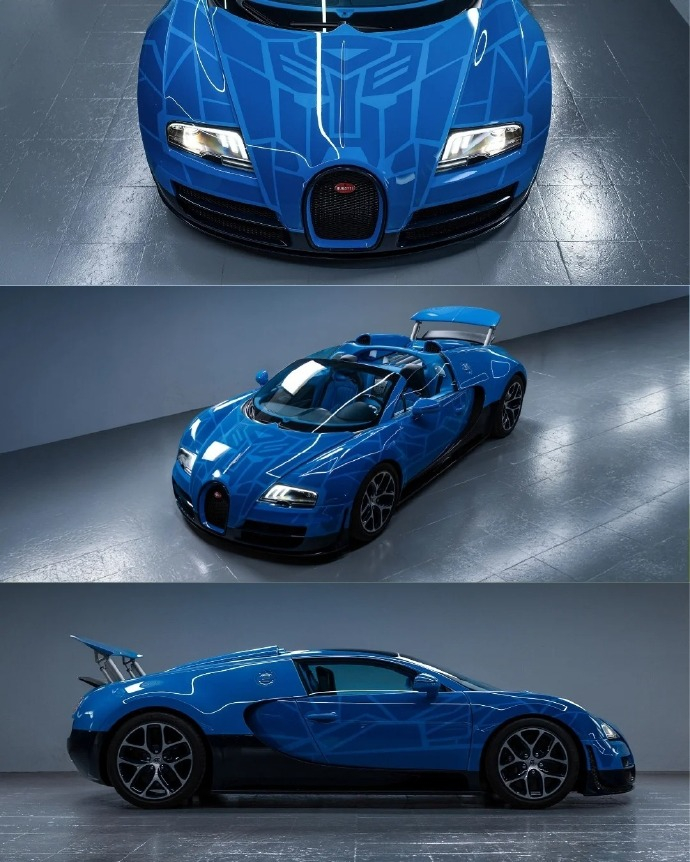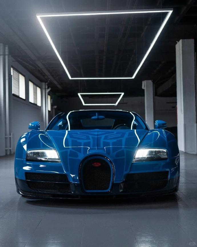 变形金刚迷集合啦威龙定制款太顶了,蓝黑碳纤车身印标志性logo超吸睛内饰博派标超点睛,蓝黑皮革配蓝缝线帅到犯规变形金刚主题威龙定制车