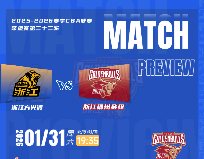 虎扑01月31日讯今日CBA常规赛:浙江男篮将对阵广厦男篮。