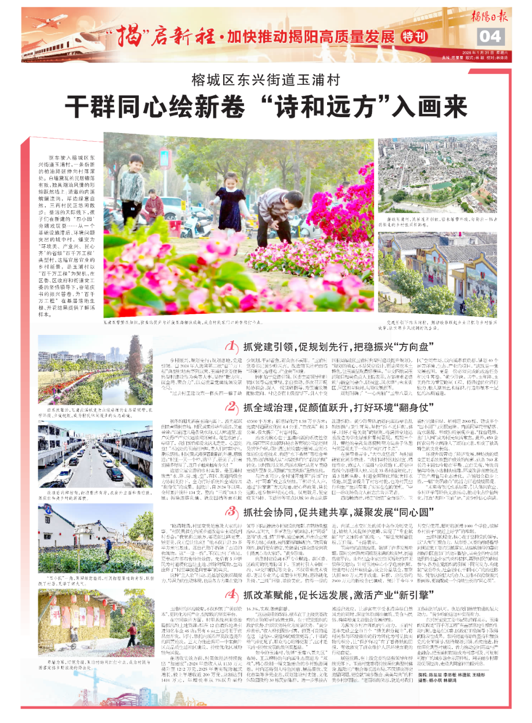 展望前路,在上级党委的坚强领导和持续关怀下,玉浦村党委将持续深化典型村建设、推动三产融合等长远布局,不仅解决历史遗留问题,更绘就“城乡融合、美美与共”的和美乡村新图景。“老百姓的笑容,就是对我们工作最好的认可,也是我们继续前进的最大动力。”黄少珍的话语朴实而有力。