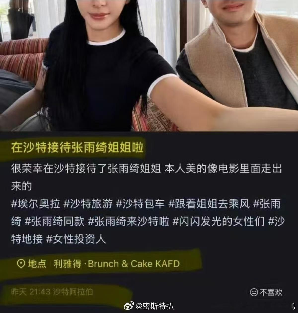 博主在迪拜接待了张雨绮,夸赞姐本人美得像电影里面走出来的