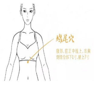 位于胸骨下端近心窝处。可缓解晕车、焦虑。用拇指从上向下轻擦此穴,可以在乘车半小时前后开始按揉。