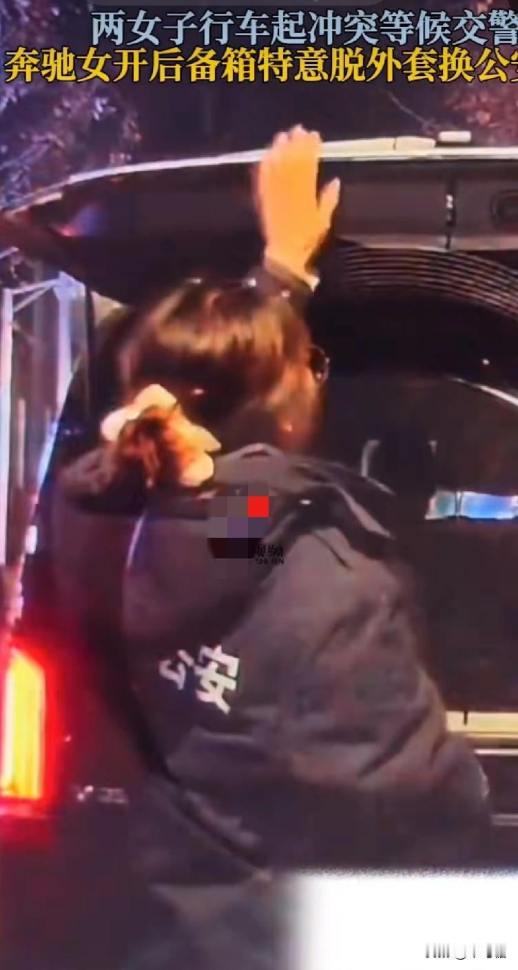 两个女子开车的时候发生了刮蹭,这本来是件很平常的事情,可没想到其中一女子在等交警的时候,从她的后备箱拿出了一套公安的衣服,当着所有人的面,把羊绒大衣换了制服装。 换装之后的女司机,腰板一挺,回到另一女司机旁边,继续等待,隔着屏幕都感觉到,姿态明显变得强势了。 这一幕被路过的车主拍下来发到网上,直接就炸了锅。评论区里网友们都看蒙了,清一色的吐槽:“这操作也太秀了吧?刮个车还得先换身行头?”短短几个小时,这事儿就冲上了各大平台的热搜。 其实俩车刮蹭就是简单的民事纠纷,该走保险走保险,该赔钱赔钱,交警来了自然会按规定公正处理。这位女司机偏偏要整这么一出,大概率是想借警服的“威慑力”让对方服软,甚至盼着交警能偏向自己。 根据《人民警察法》规定,警服是人民警察专用装备,非警务人员非法持有、使用已经涉嫌违法。这种“想靠特权搞特殊”的心思,才是最让大家反感的。 目前这起事件已经引起了警方的关注。无论是此前的“亮证施压”事件,还是如今的“换警服摆谱”,这类试图突破规则、借助公权符号谋取私利的行为,终究只会遭到舆论谴责与法律制裁。 (图片来自网络视频)