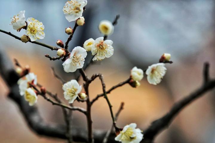 眉山岛的梅花自带水墨画般的静谧质感。眼下梅花虽未全开,零星绽放的花朵已为眉山岛添了几分清雅。