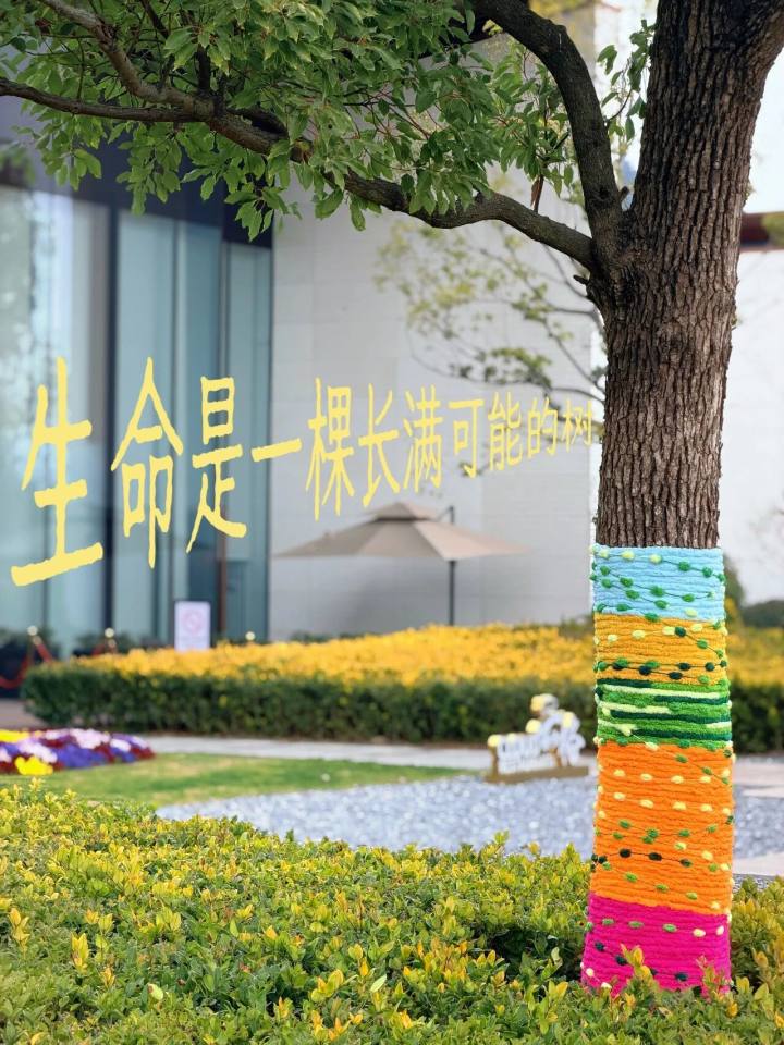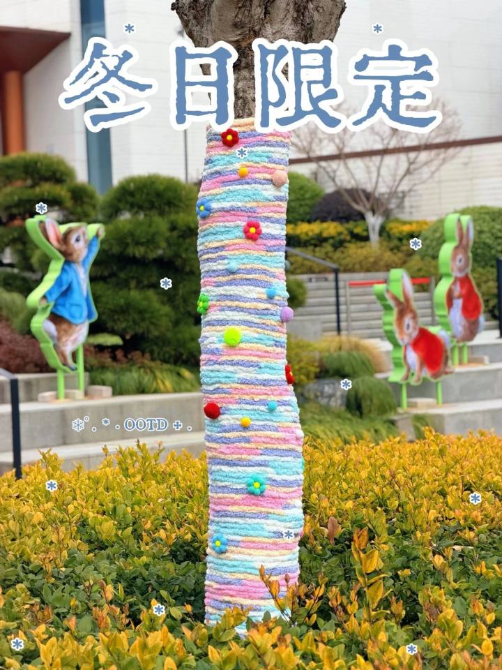 这里的树木也穿上了毛衣,用一抹明亮的“多巴胺”色彩,点亮这阴沉沉的天。