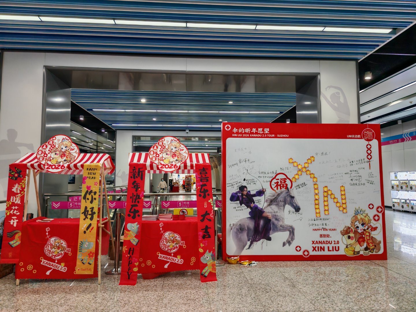 13:00机子开始准时发周边啦!🔹地点: 奥体中心地铁站 2号出口内 仙那度打卡墙也在此处🔹注意: 如果不是乘坐地铁到达的伞,需要进站才能看到摊位,和地铁工作人员说明前来打卡领周边,无需扫码,可直接进站!刘雨昕仙那度巡演苏州站